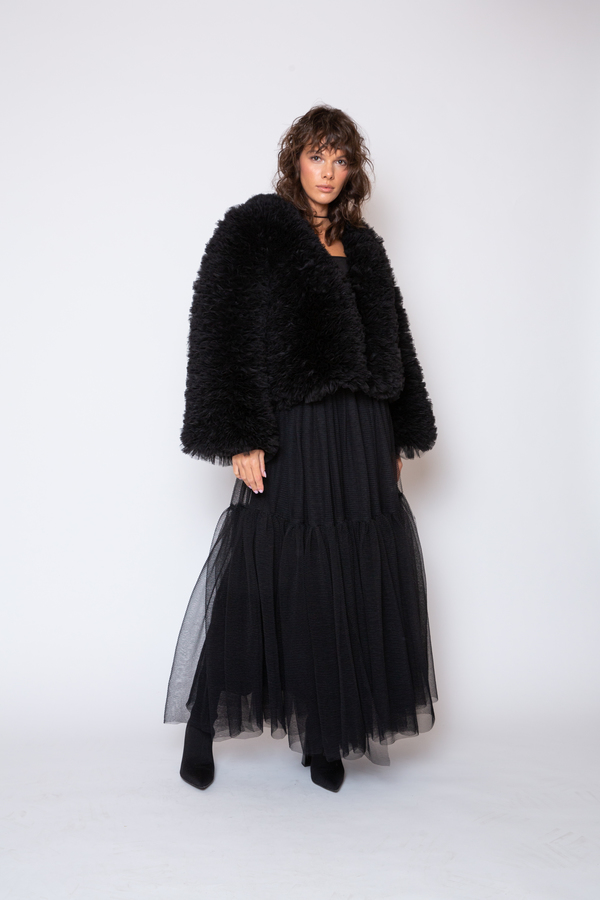 BLACK LONG TULLE SKIRT WITH FLOUNCE