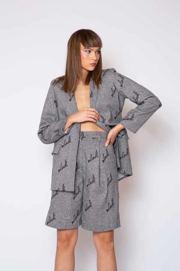 GRAY SHORTS WITH EMBROIDERED BLACK MLADI LOGO