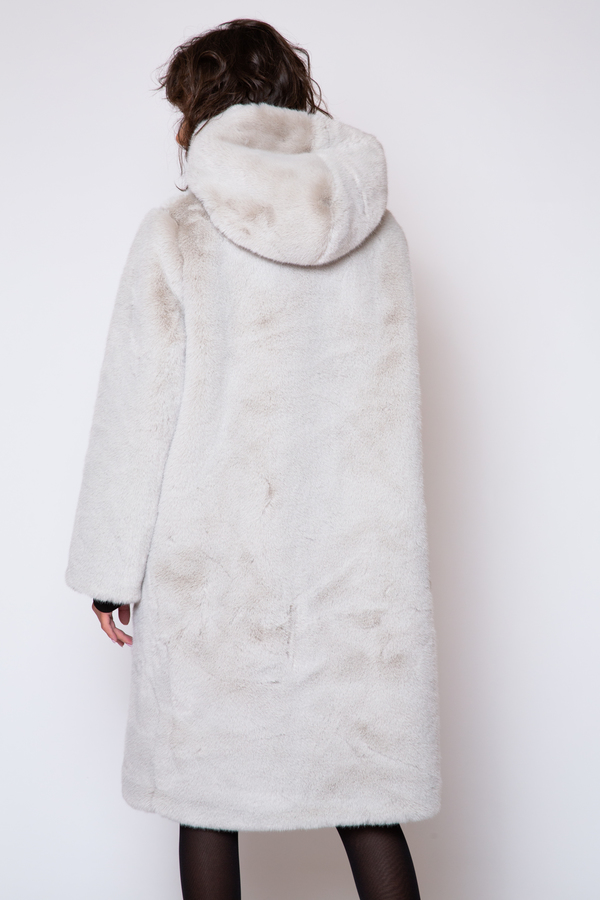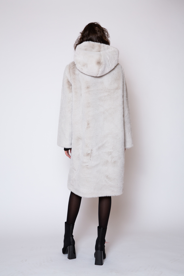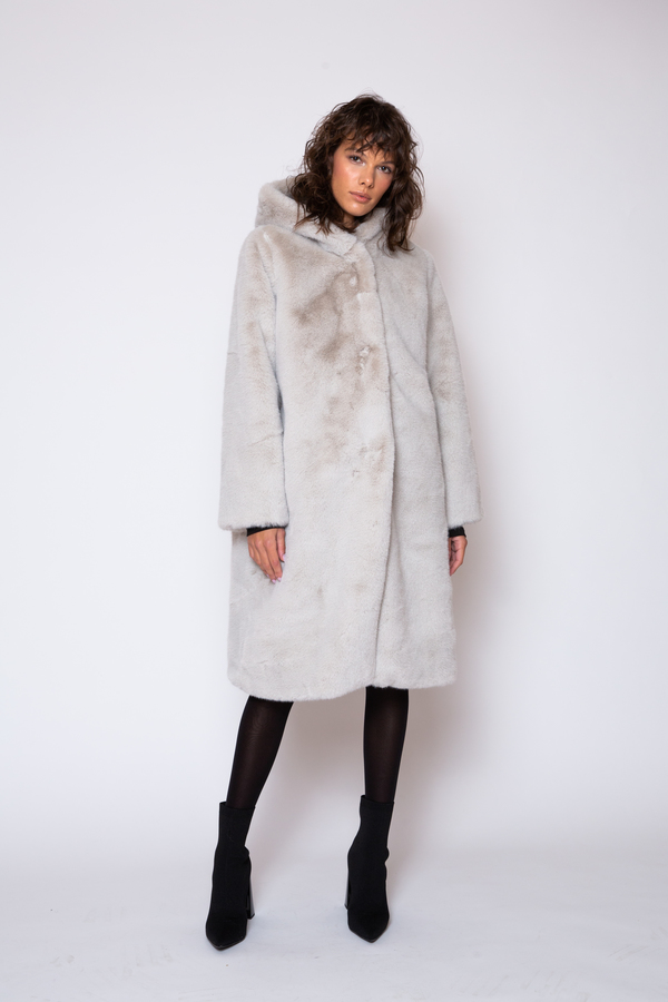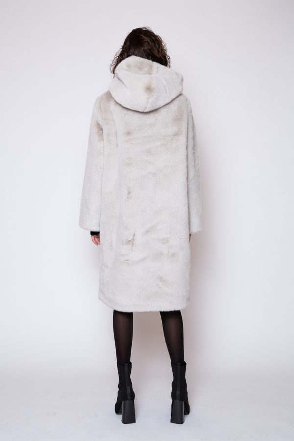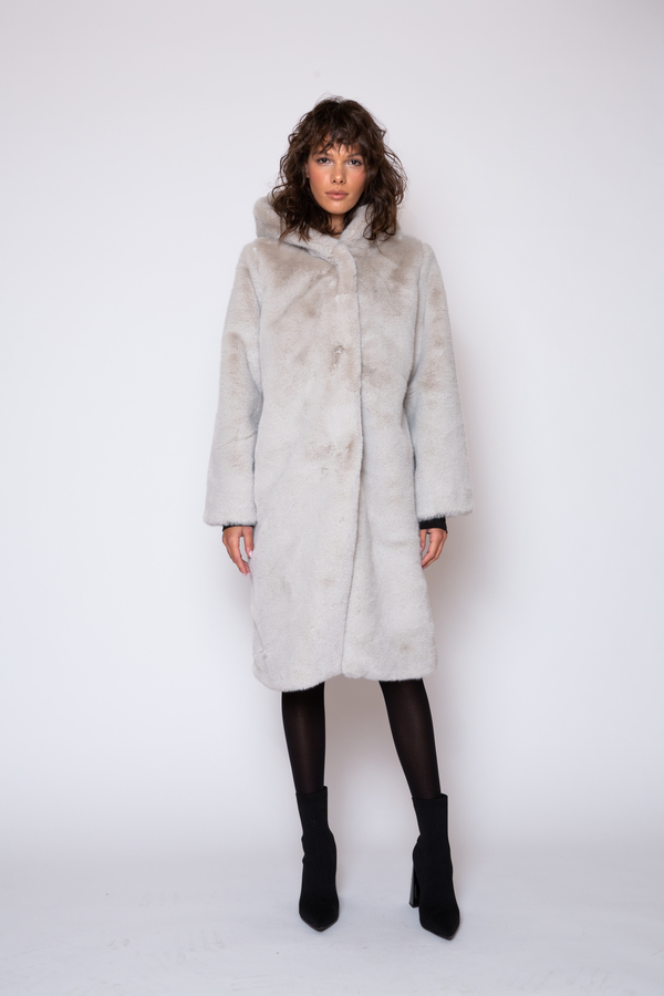 LONG HOODED GRAY TEDDY COAT