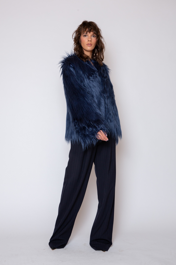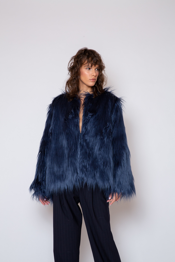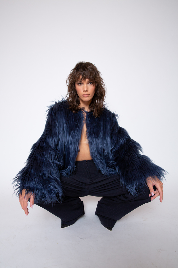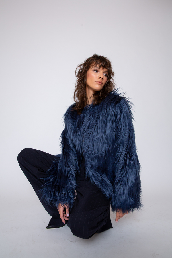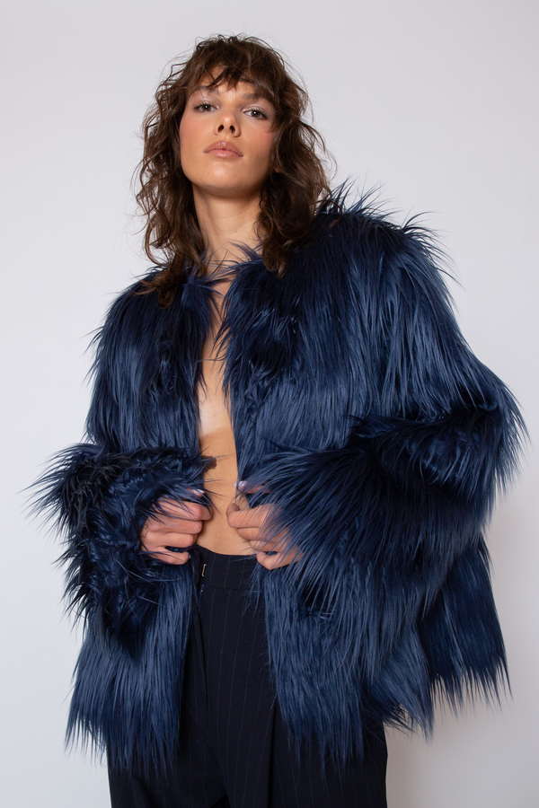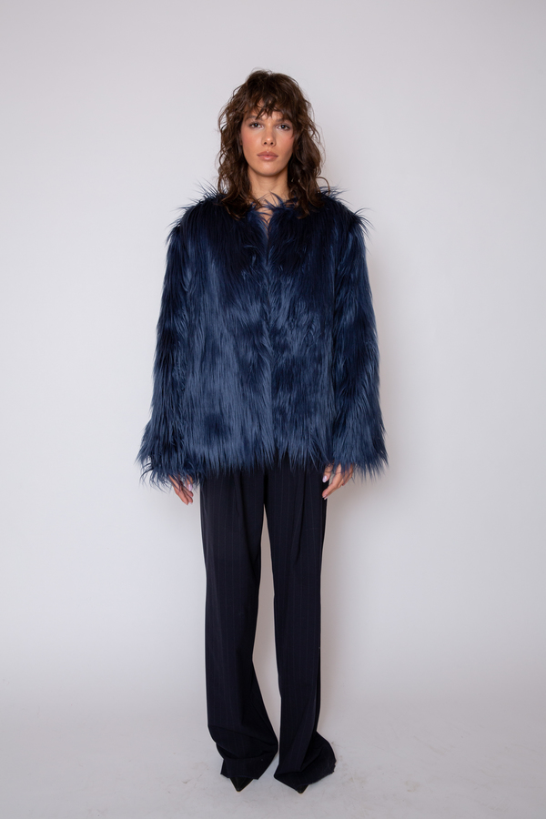 LLAMA FAUX FUR COAT SHORT NAVY BLUE