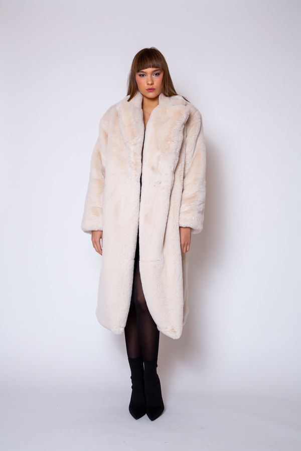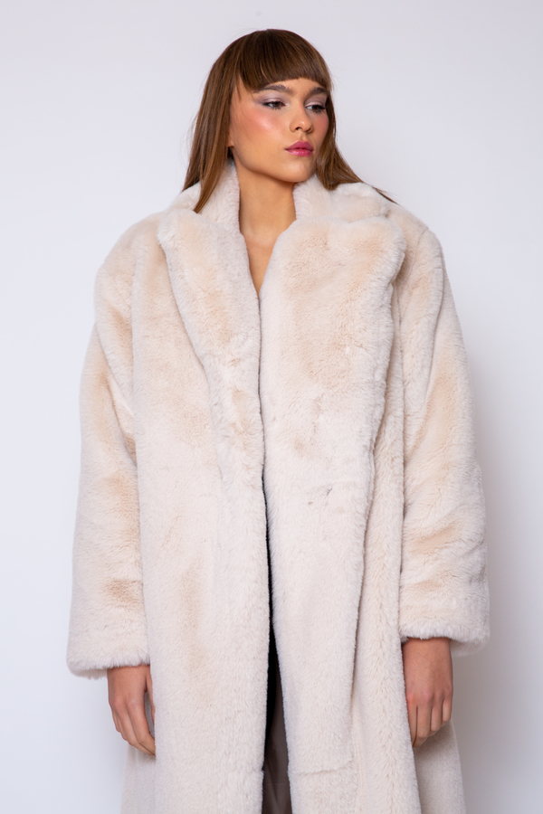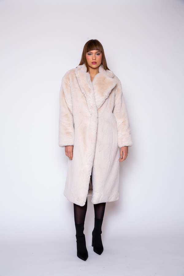 LONG TEDDY COAT WITH LAPEL COLLAR