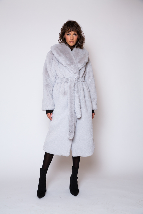 LONG TEDDY COAT WITH SHAWL COLLAR
