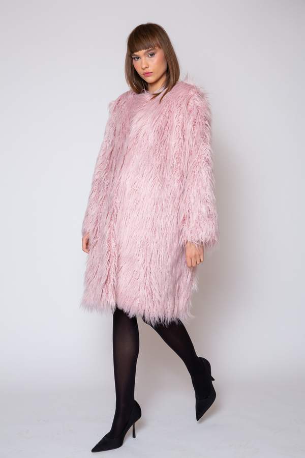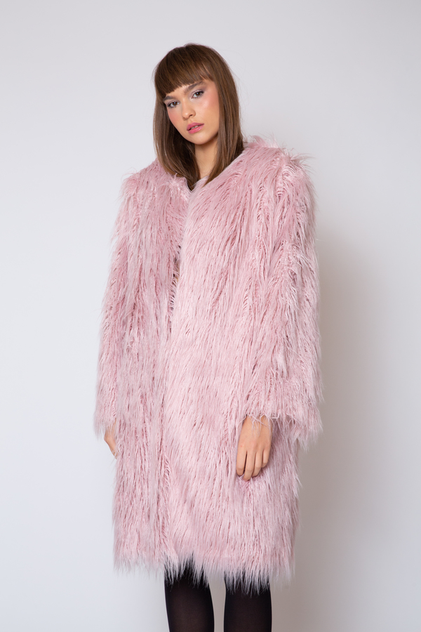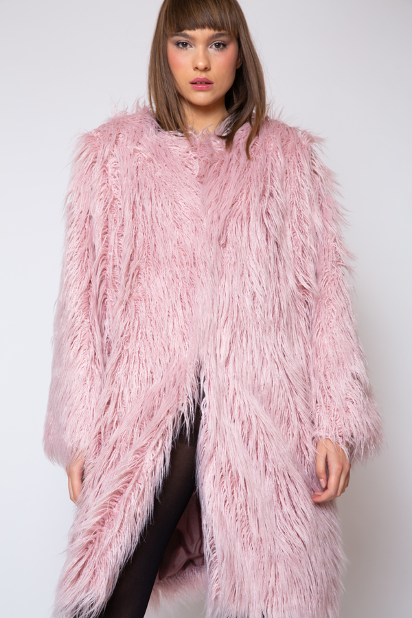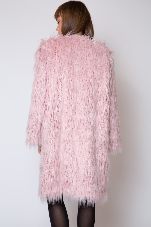 MONGOLIAN SHEEP FAUX FUR COAT LONG PINK