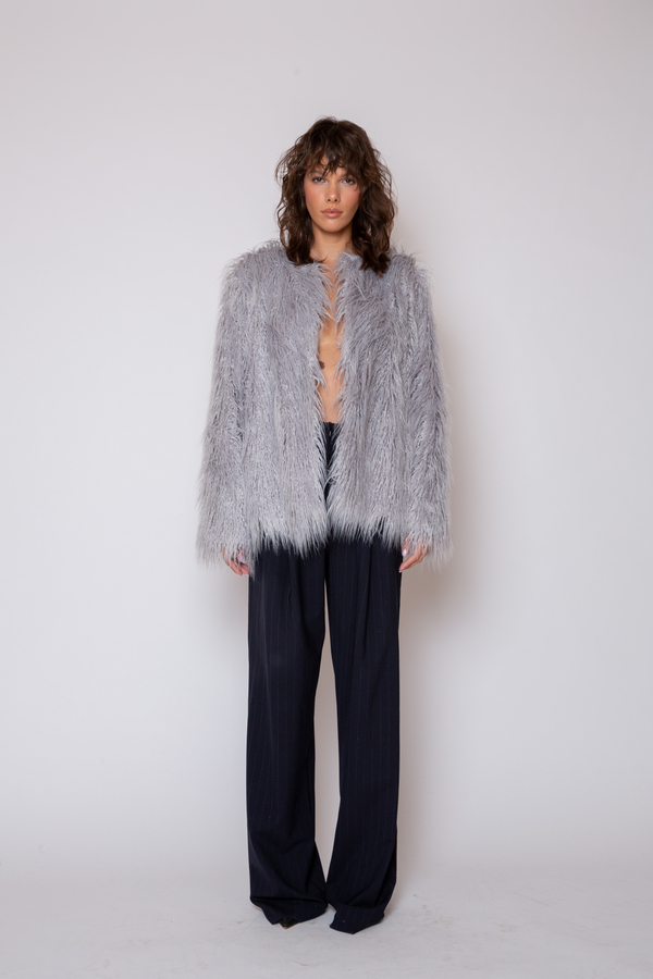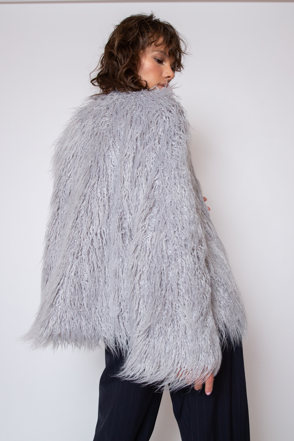 MONGOLIAN SHEEP FAUX FUR COAT SHORT GREY