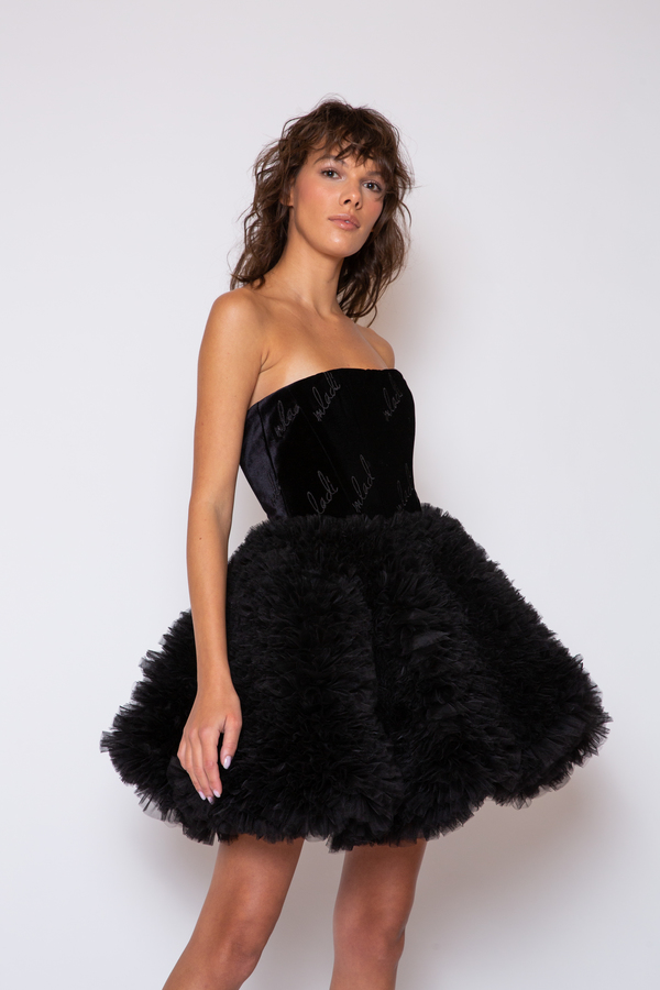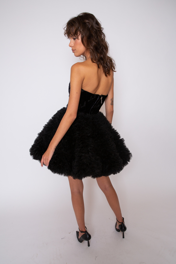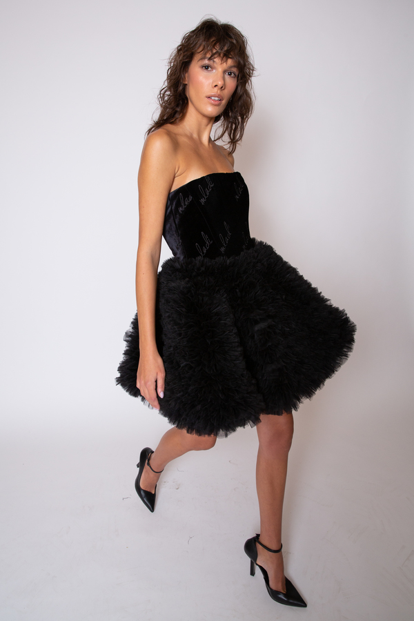 RUFFLED TULLE HANDMADE BLACK DRESS (SKIRT AND CORSET)