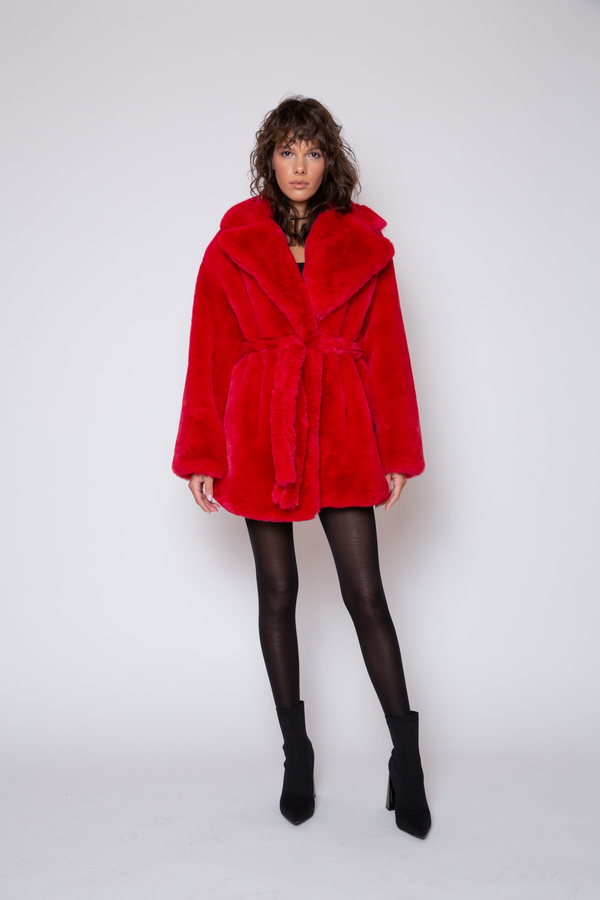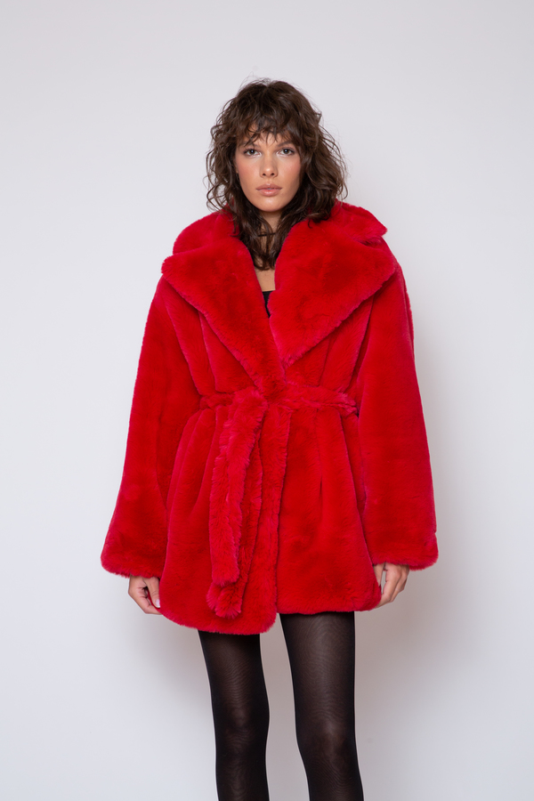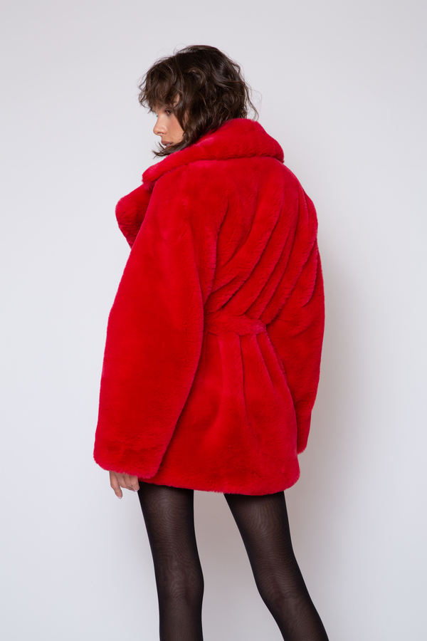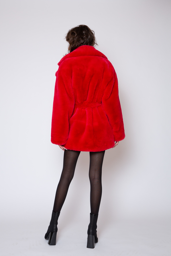 SHORT TEDDY COAT WITH LAPEL COLLAR RED