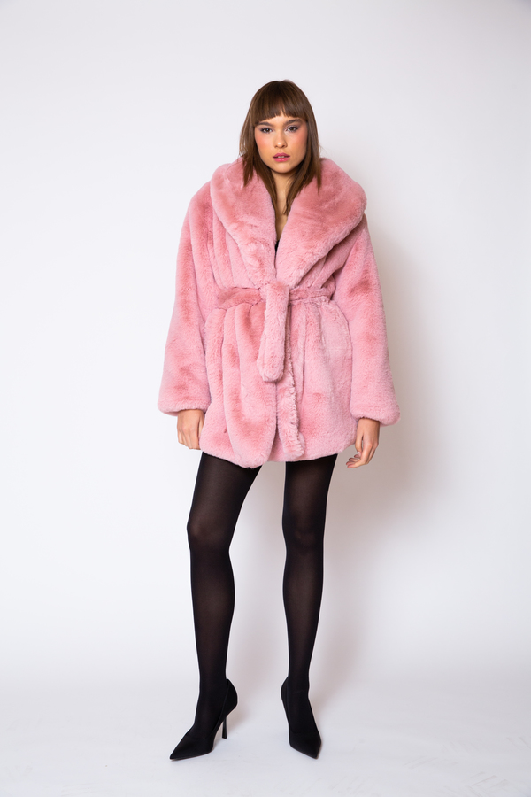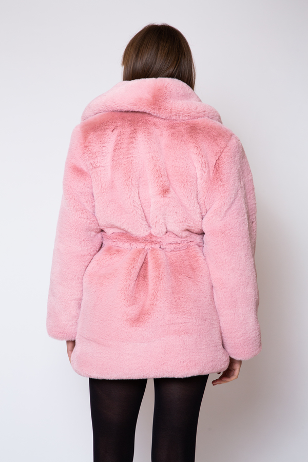 SHORT TEDDY COAT WITH SHAWL COLLAR PINK