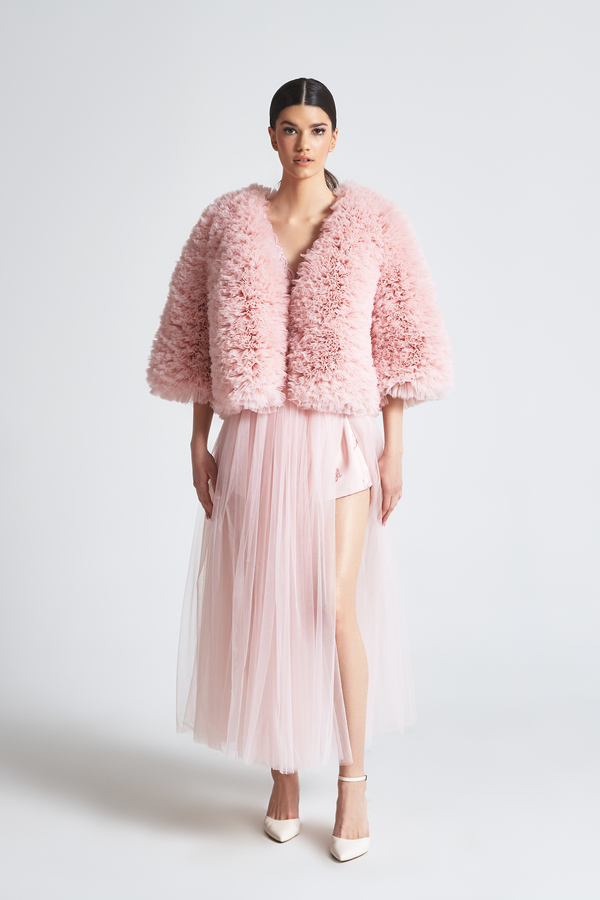 RUFFLED TULLE HANDMADE JACKET WITH SHORT SLEEVE
