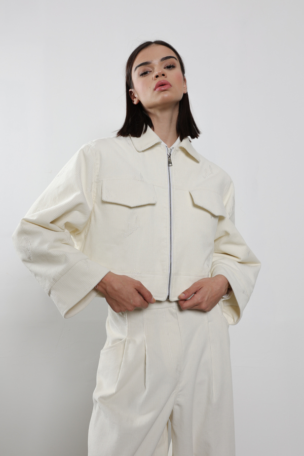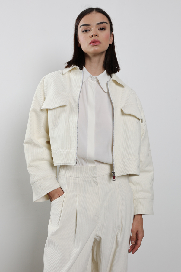 CORDUROY WHITE JACKET WITH MLADI EMBROIDERY