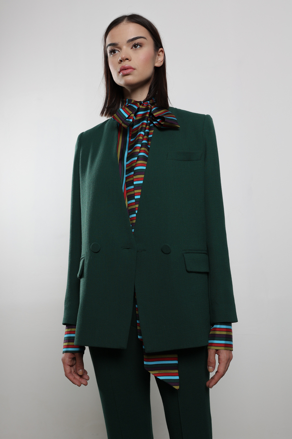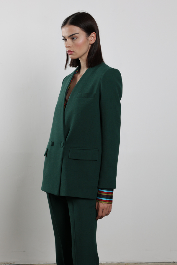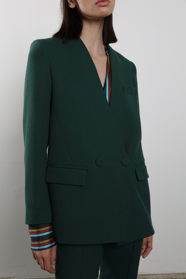 MLADI DARK BLUE BLAZER WITH CRYSTAL EMBELLISHED SHAWL LAPEL