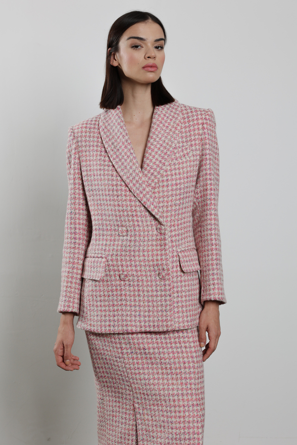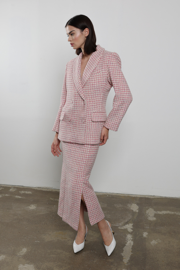 LIGHT PINK HOUNDSTOOTH PATTERN SKIRT