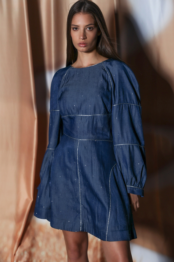CRYSTAL – EMBELLISHED DENIM SHORT DRESS