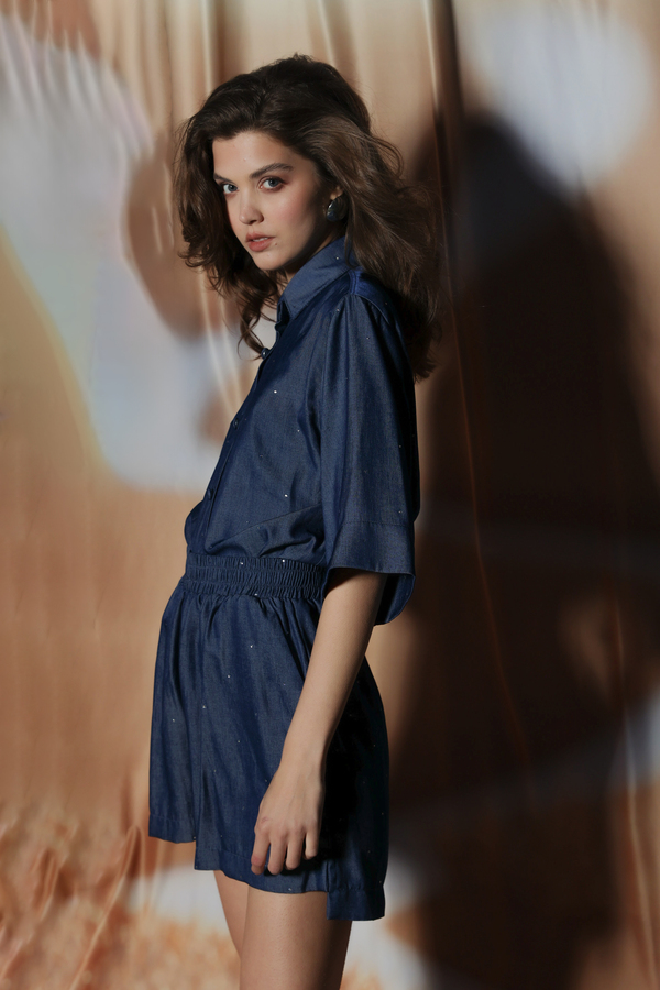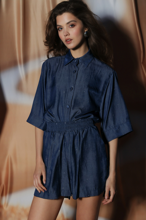 CRYSTAL – EMBELLISHED DENIM SHORTS