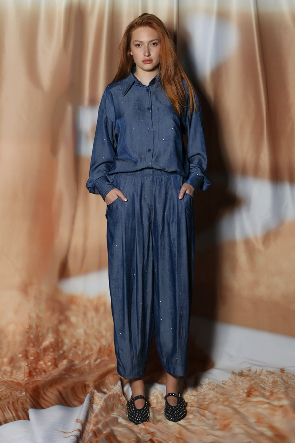 CRYSTAL – EMBELLISHED DENIM SHIRT
