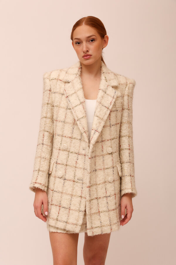 CHECK MOHAIR BEIGE SET WITH SKIRT