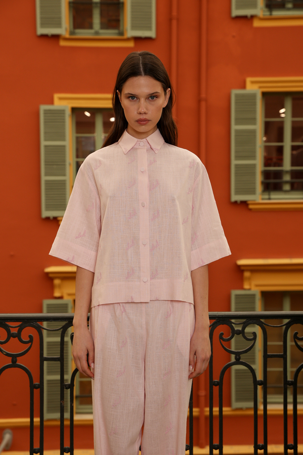 PINK LINEN SHIRT WITH EMBROIDERY MLADI LOGO