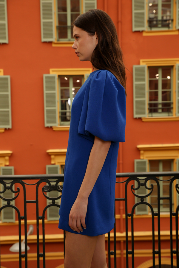 ROYAL BLUE WOOL DRESS WITH PUFF SLEEVES