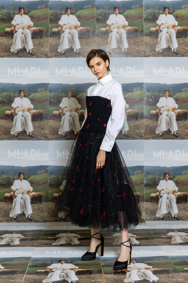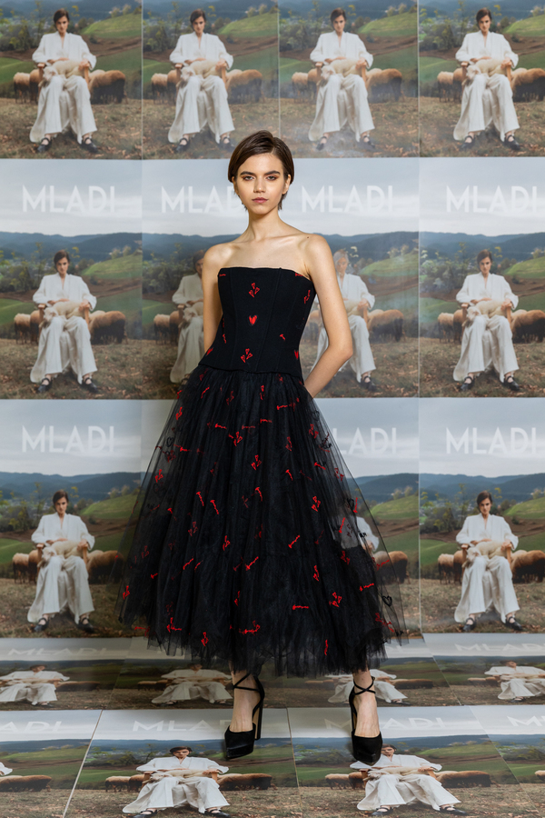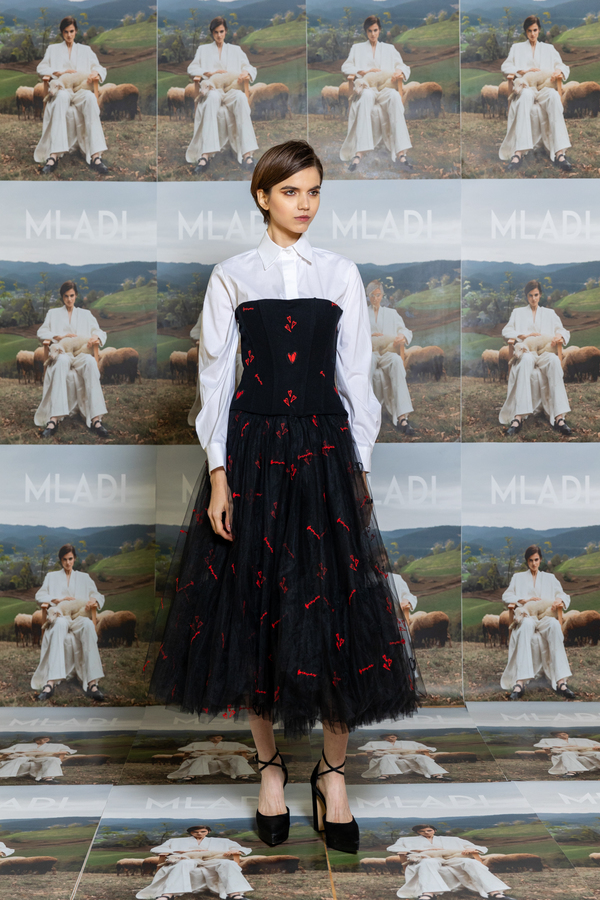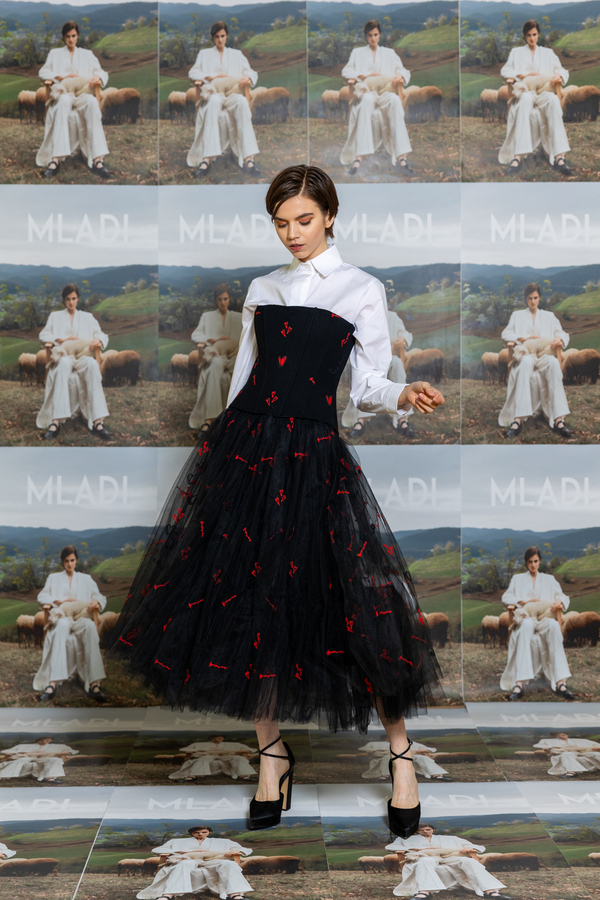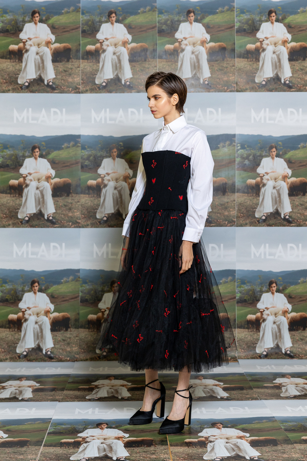 BLACK TULLE SKIRT WITH HEART EMBROIDERY