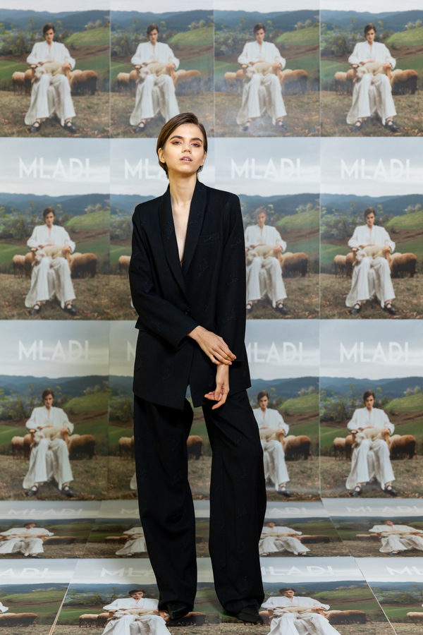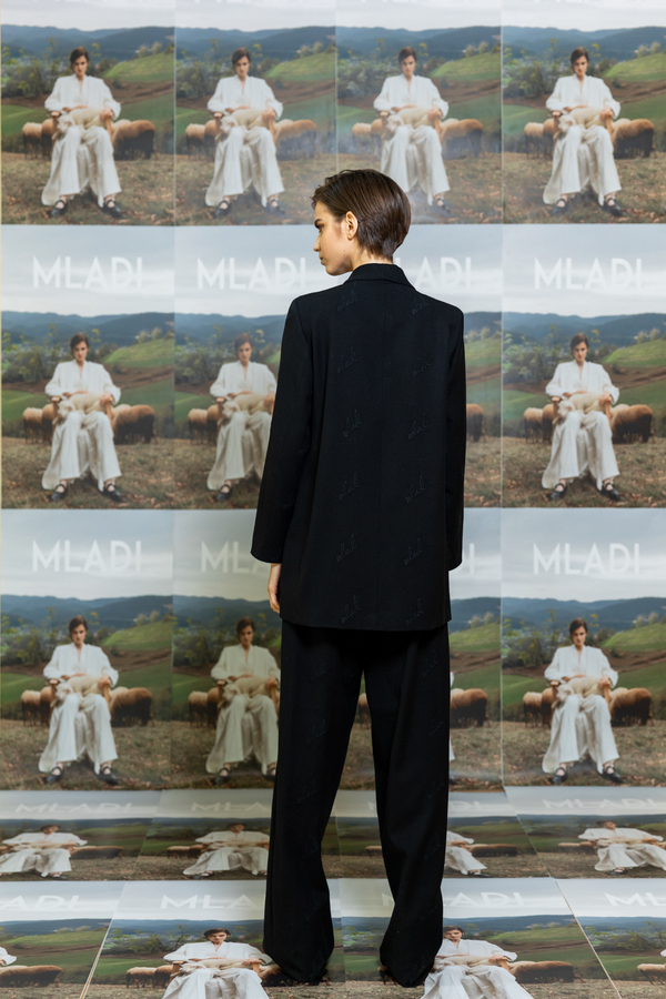 BLACK WOOL SUIT WITH HEART EMBROIDERY