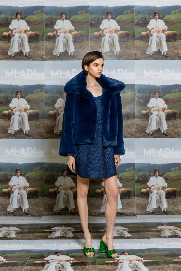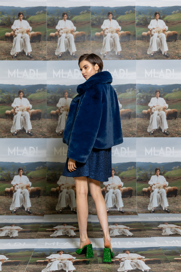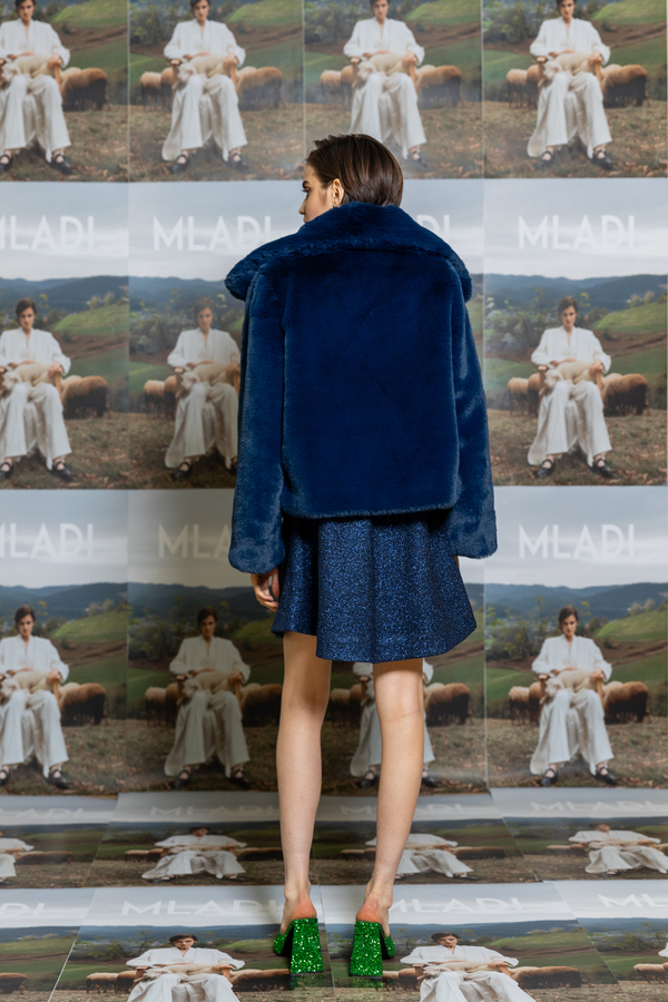 SHORT PETROL BLUE TEDDY COAT WITH COLLAR