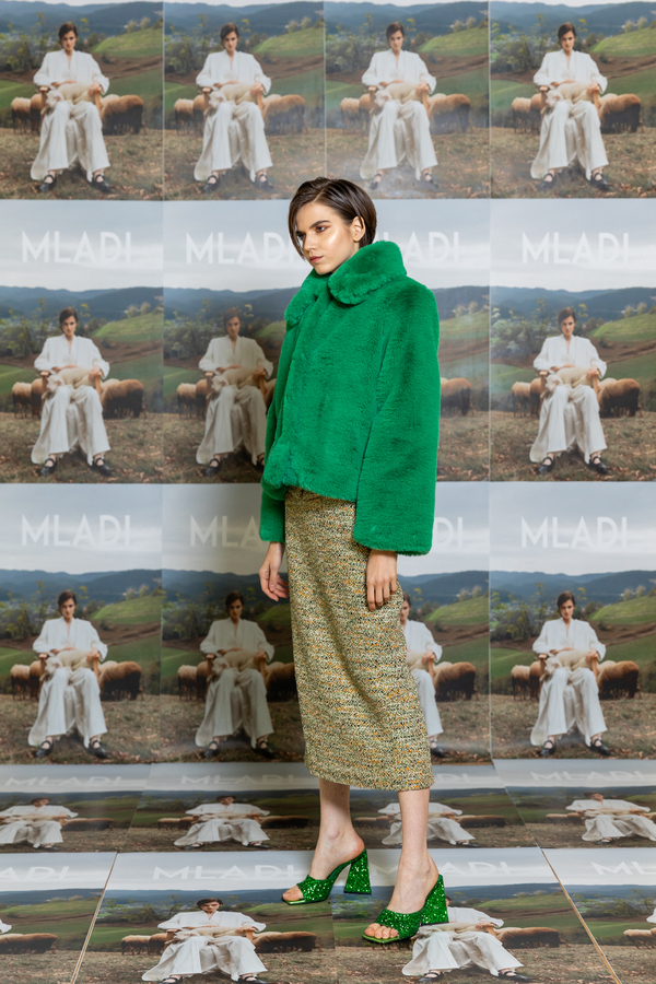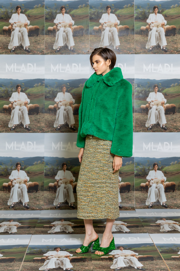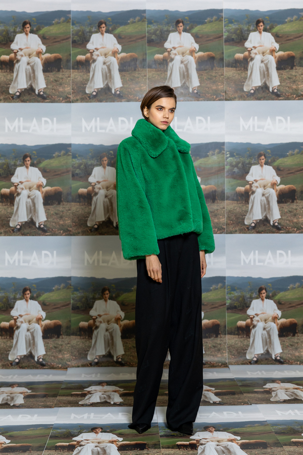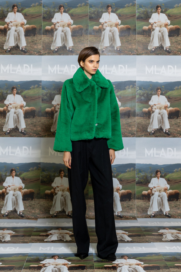 SHORT GREEN TEDDY COAT WITH COLLAR