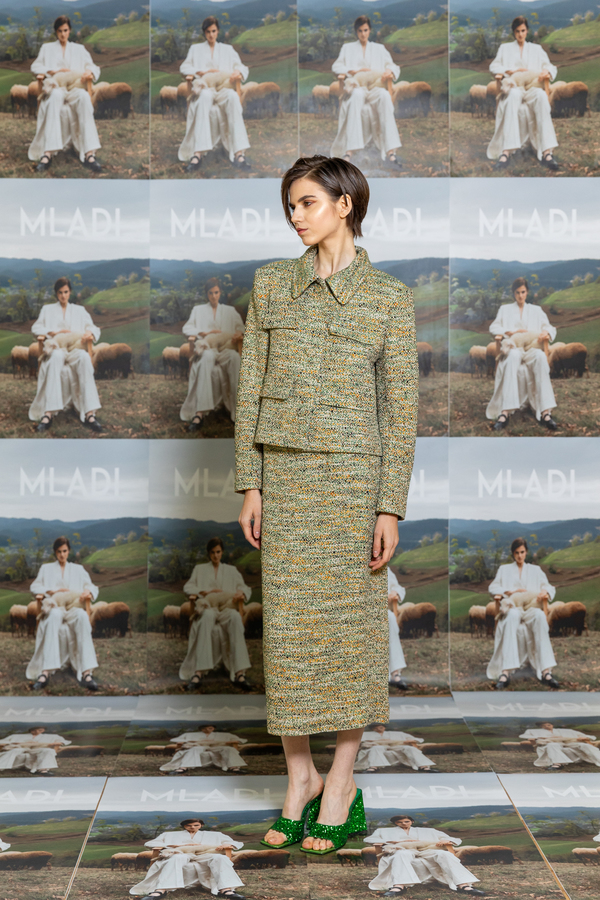 BLACK WOOL SUIT WITH HEART EMBROIDERY