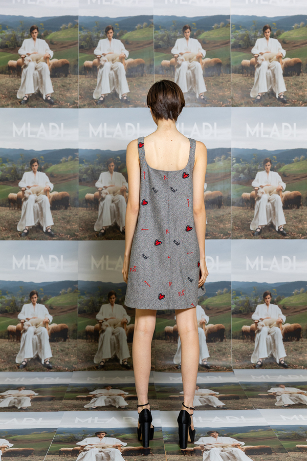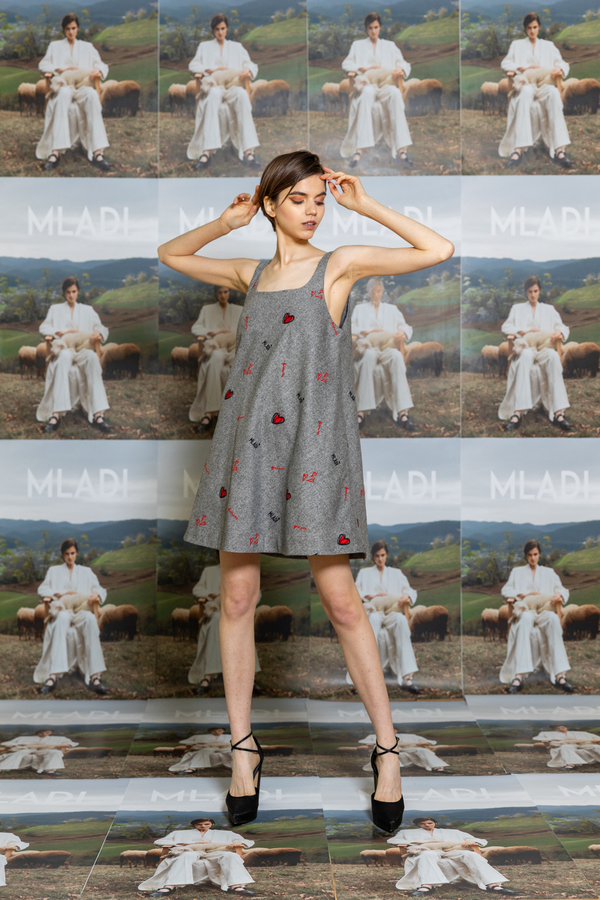 BLACK WOOL DRESS WITH HEART EMBROIDERY