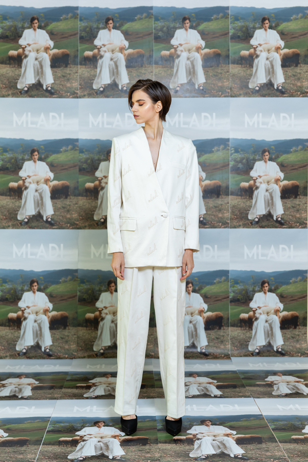 WHITE WOOL BLAZER WITH EMBROIDERY