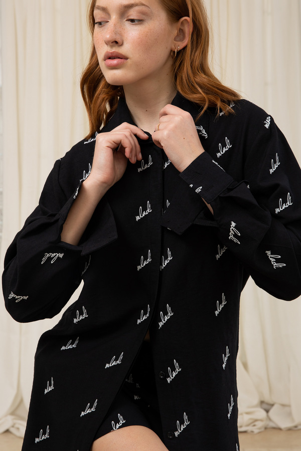 MLADI EMBROIDERY LOGO BLACK VISCOSE SHORTS
