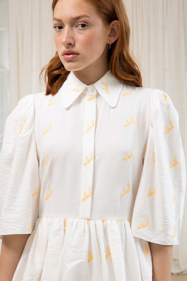 MLADI EMROIDERY LOGO MINI VISCOSE SHIRT DRESS