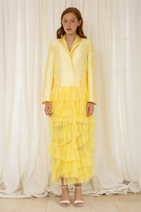 MLADI LOGO BLAZER DRESS WITH RUFFLED TULL YELLOW